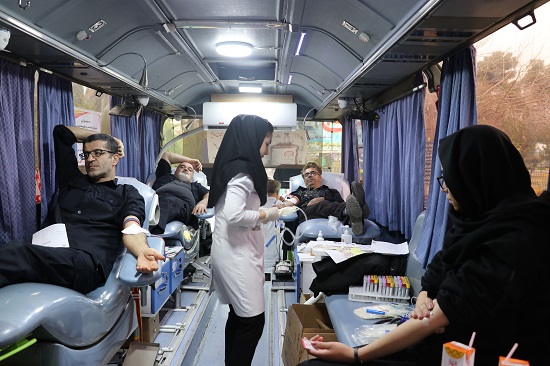 استقرار ایستگاه سیار انتقال خون به همت بسیج جامعه پزشکی بیمارستان نمازی به مناسبت ایام دهه فجر