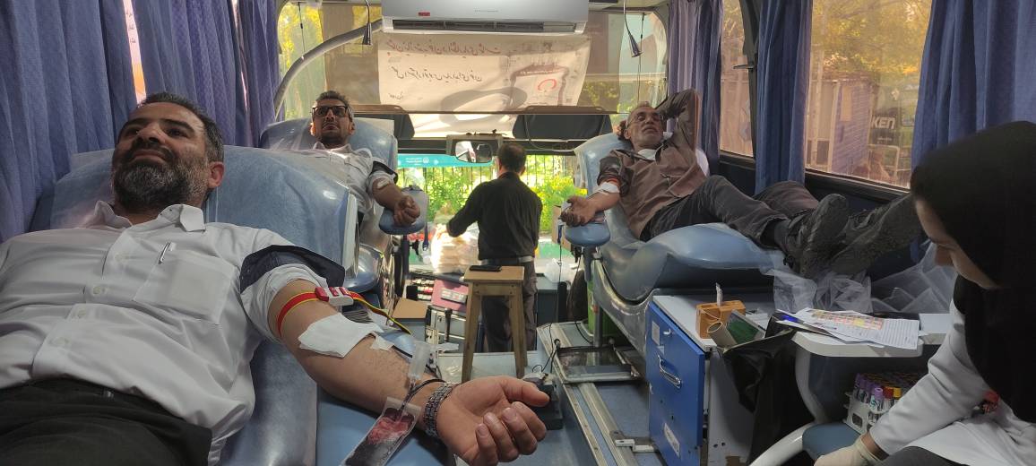 استقرار ایستگاه سیار انتقال خون در بیمارستان نمازی